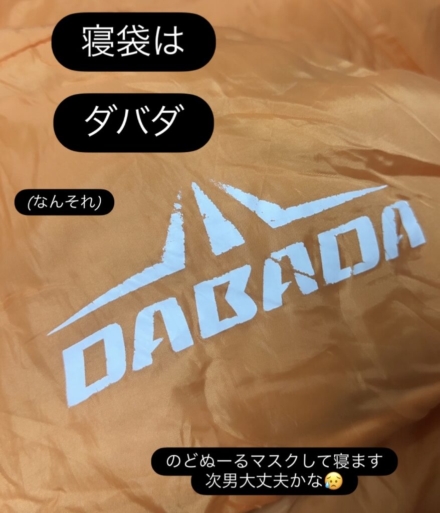 夜は寝袋で寝ました(笑)