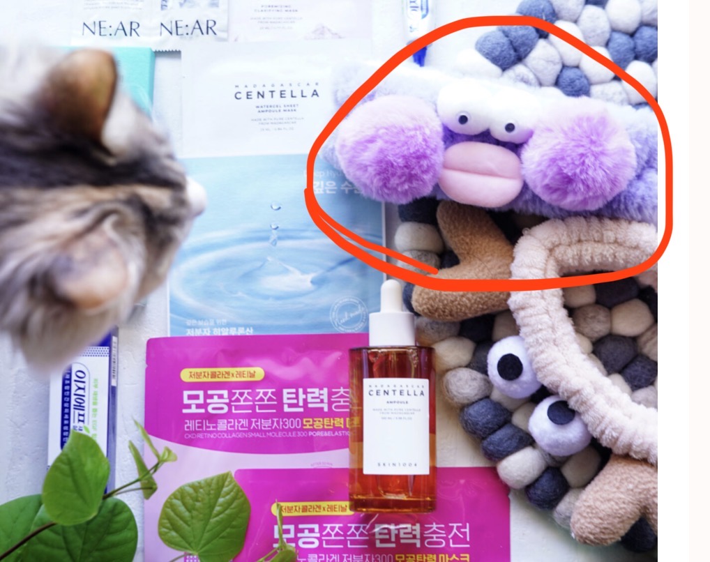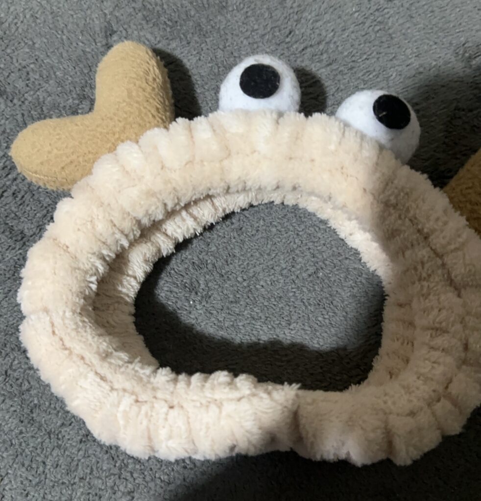 髪がじゃまなので、韓国で買ったヘアバンドと一体化していた…かわいかろ(白目)(ゴミ出しには行ってないよ、危うく出そうになったけど)
