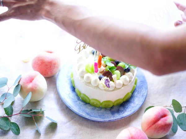 かわいいアイシングクッキーとか、まんまる桃とかで、キュートなケーキ、作りたかったな…