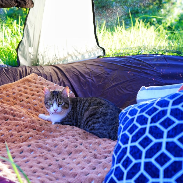 ちょっとした日よけに便利だな、こりゃ。さっそくムギちゃんが入っとる(笑)