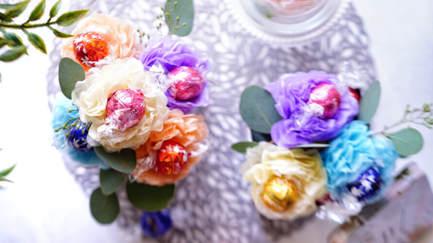 色とりどりのリンツを使って、リンドールアート! 私はくしゅくしゅのお花