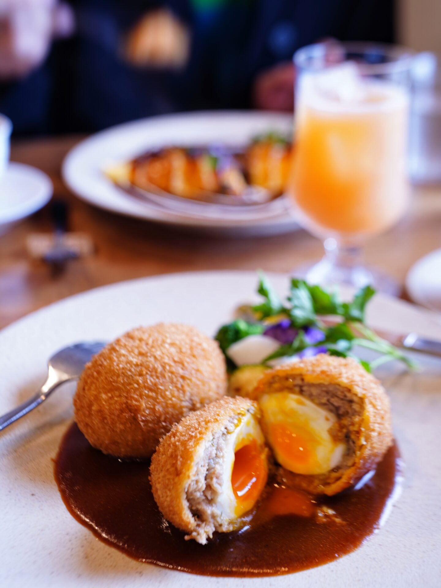 スコッチエッグは卵がとろりん。芸術!