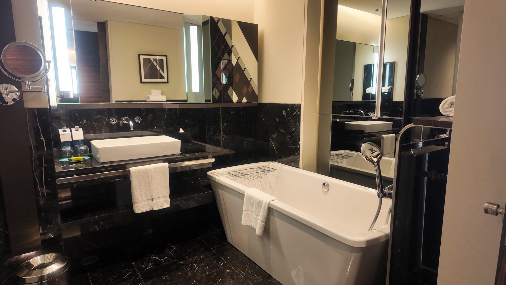 ステイタスで高層階+ラウンジアクセス付のお部屋にアップグレードしてもらったので、快適なホテルステイが約束された…!