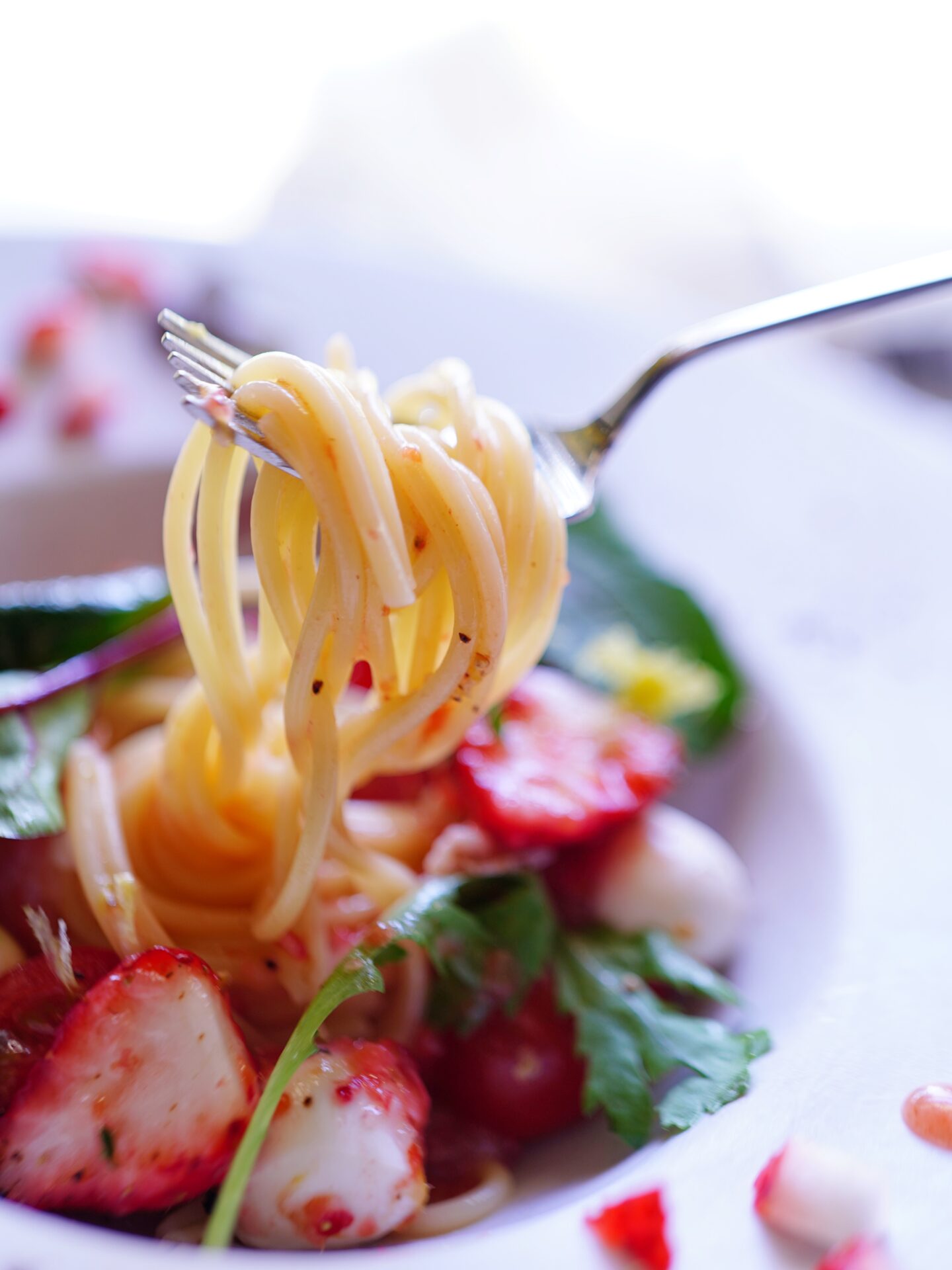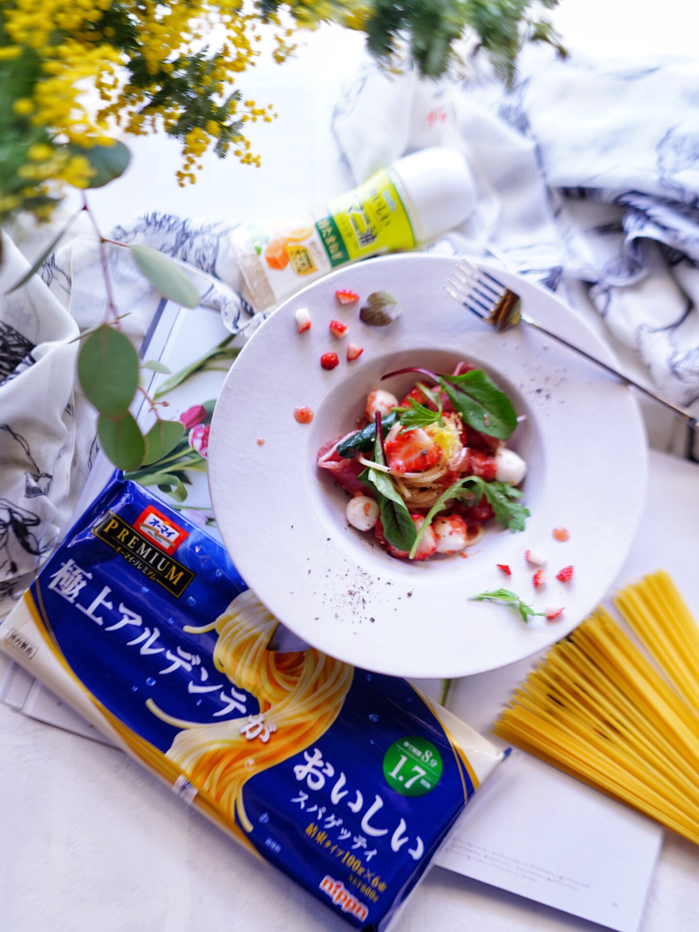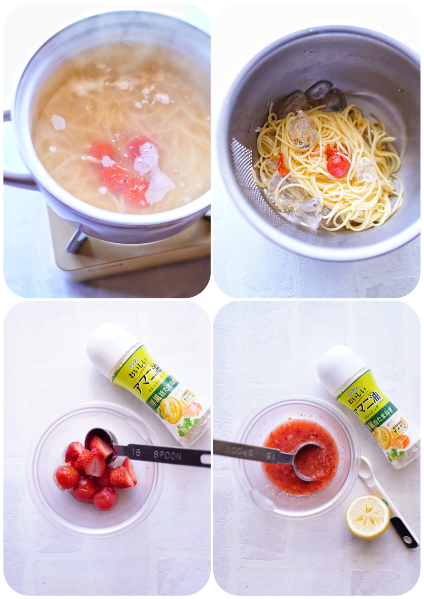 いちごとミニトマトの春色冷製パスタ(★レシピあります)